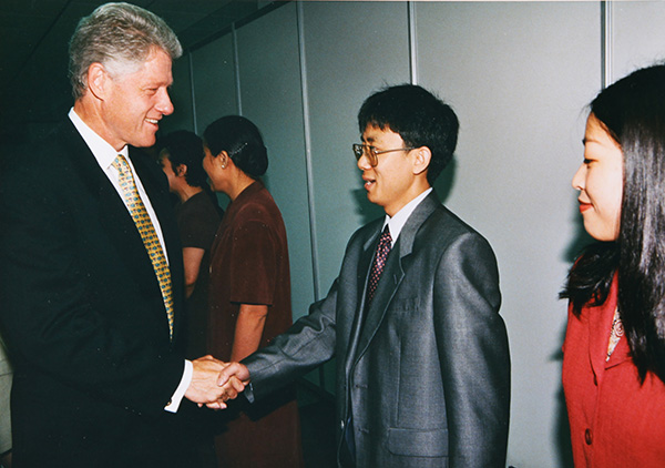 1998年克林顿访沪并与上海市民座谈,吴心伯是八位代表中