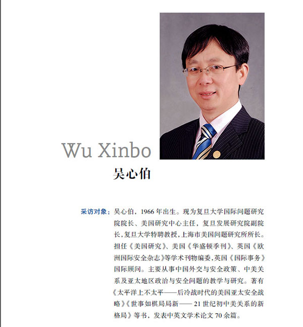 吴心伯可谓是中美关系学术界中青年学者的领军人物。他不仅在学术上奋发有为,还活跃在中美外交的舞台上:1998年,克林顿访华,在和他的对话中首次公开重申美国对台“三不”政策;从2007 年起,他与美国的葛小伟教授合作举办中美青年外交官对话,迄今已举办了10 届……