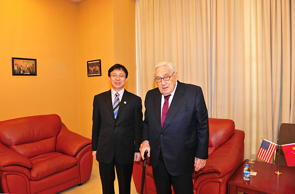 2013年9月,吴心伯在复旦大学美国研究中心接待到访的基辛格。