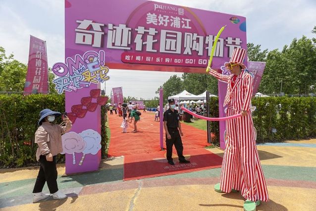 6月6日至7日,上海浦江郊野公园举办购物节,市民在公园游玩的同时,还能选购折扣商品。(王翔摄)