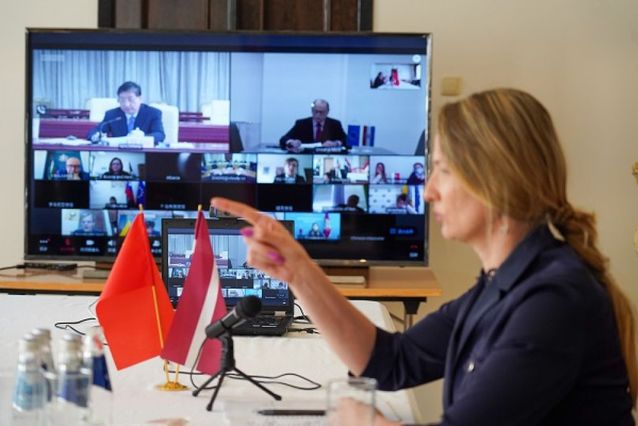 5月13日,在中国驻拉脱维亚大使馆,拉脱维亚卫生部欧洲事务和国际合作司司长丽嘉·提姆萨代表拉方在中国—中东欧国家卫生部长视频会议上发言,表示愿同中国及中东欧各国加强公共卫生安全合作。(亚尼斯摄)