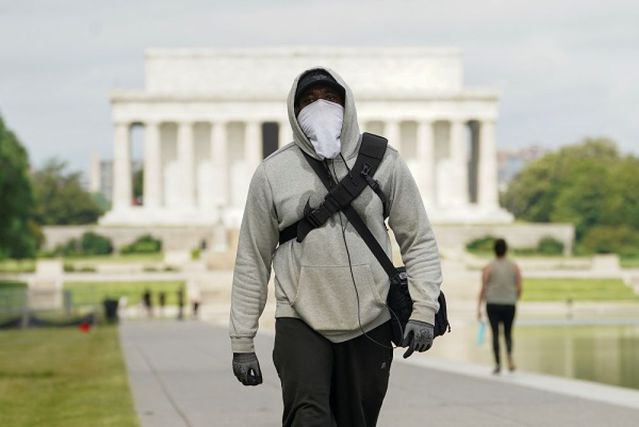 5月27日,一名男子经过美国首都华盛顿的国家广场。(路透社)