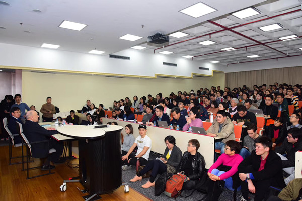 图说: 2018年12月,傅高义在复旦大学美国研究中心演讲。吴心伯 供图