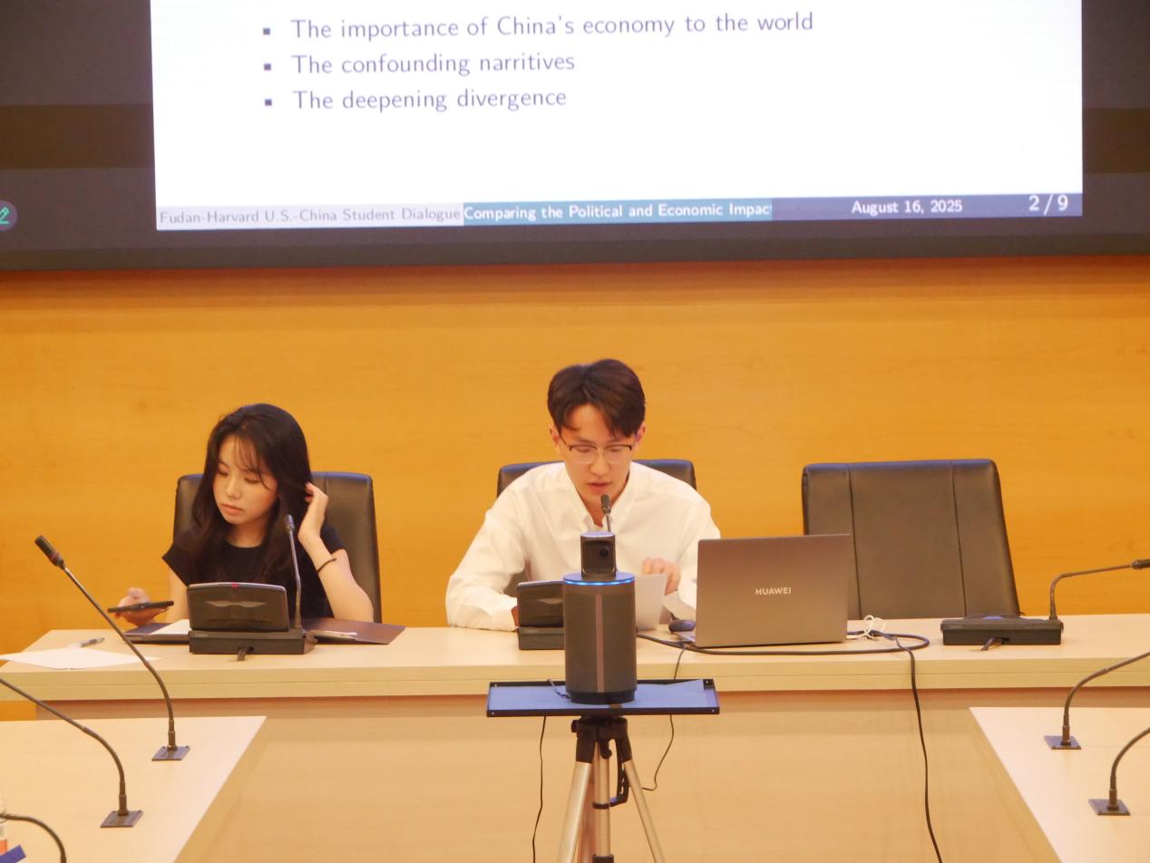活动在8月16日下午拉开帷幕。复旦大学国际问题研究院院长、美国研究中心主任吴心伯教授发表开幕主旨演讲,他强调在全球化背景下中美青年应增强互信、探索共同利益,为两国乃至全球治理贡献智慧。哈佛大学与复旦大学的学生代表分别发。随后,双方学生展示了与亚洲协会、复旦大学美国研究中心及哈佛大学肯尼迪学院的合作研究项目,分别就多项前沿课题进行了研究成果分享。