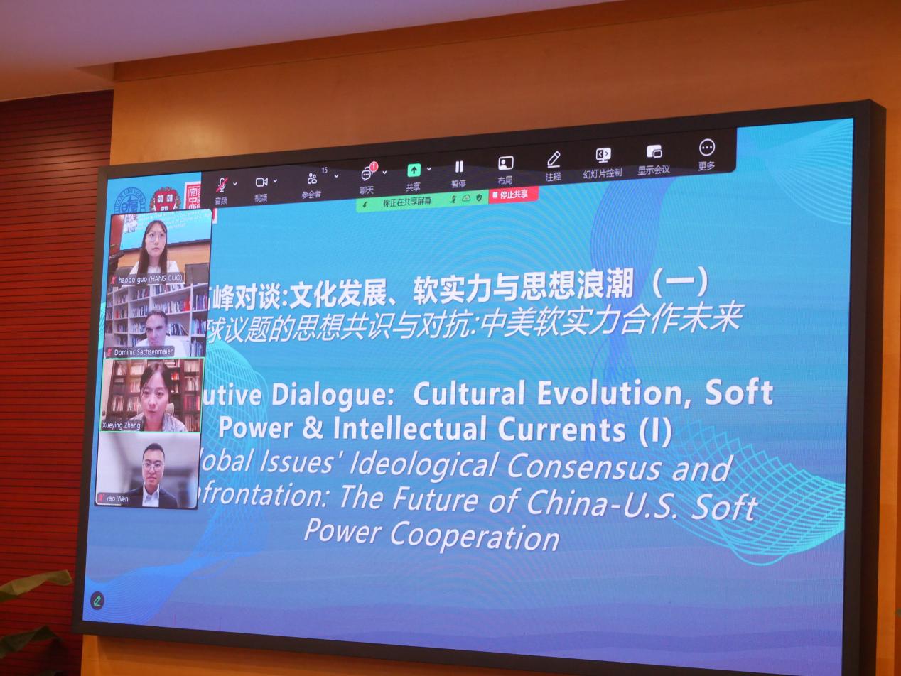 8月16日上午的高峰对谈由复旦大学国际关系与公共事务学院青年副研究员张雪滢、复旦大学美国研究中心副教授温尧与哈佛大学韦瑟特海德国际事务中心访问学者多米尼克·萨克斯迈尔三位学者参与。与会嘉宾围绕中美在软实力和思想层面的互动展开深入交流,涉及文化输出、舆论叙事与代际价值观变迁等重要议题。大家聚焦两国如何在教育、影视、公共外交等领域建立互信,克服意识形态分歧,共同应对全球性挑战,探索形成新的文化交流范式。