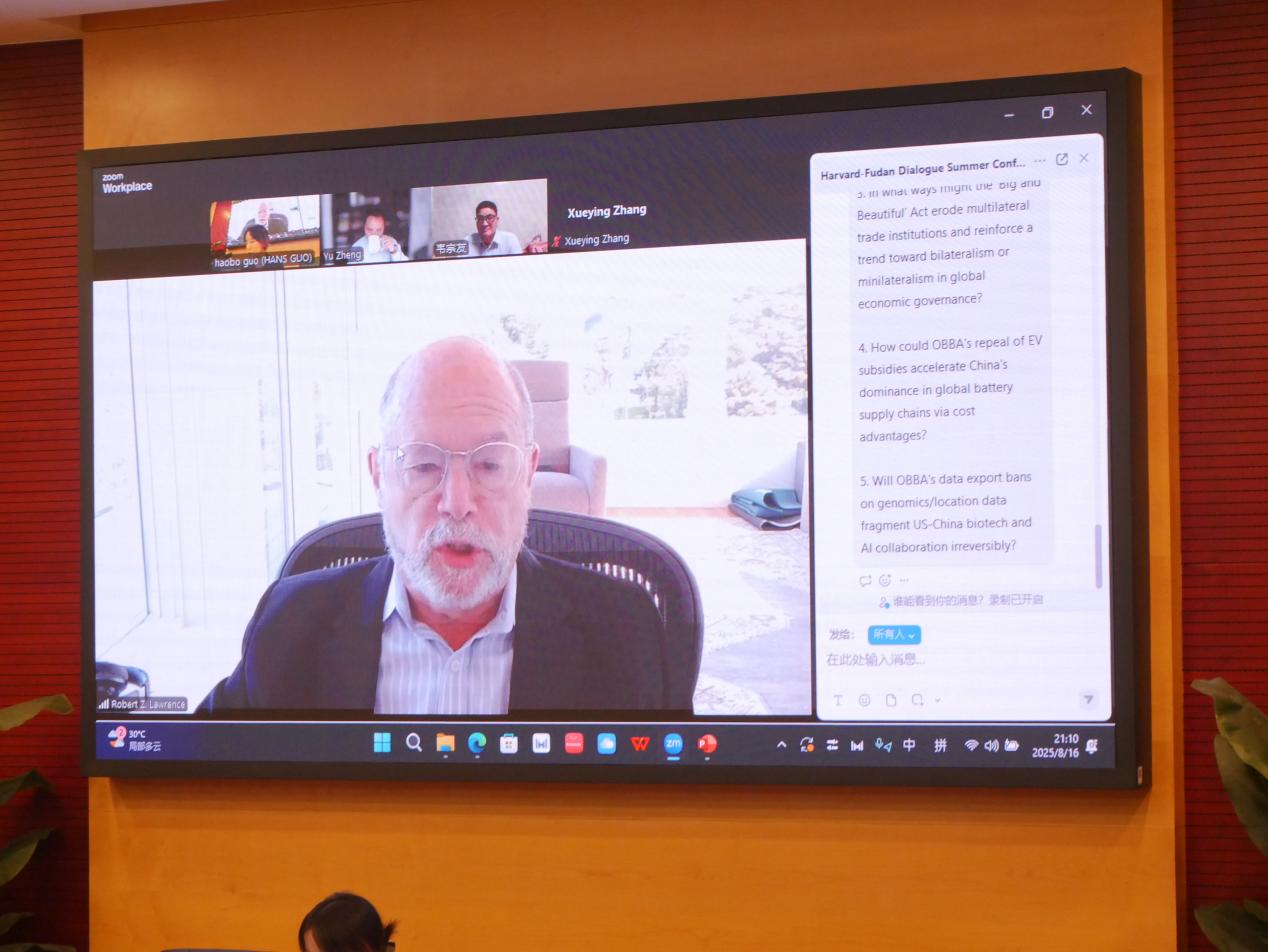 本场高峰对谈邀请了复旦大学美国研究中心教授韦宗友、复旦大学国际关系与公共事务学院教授郑宇与哈佛大学肯尼迪政府学院教授罗伯特·劳伦斯。与会嘉宾聚焦美国最新推出的"美国竞争法案"及其对中美贸易关系和中长期战略竞争的影响,深入剖析了供应链重组、技术管制和高关税政策的现实效果。大家呼吁两国在维护自身核心利益的同时,保持多边贸易体系的稳定性,为企业合作保留空间。
