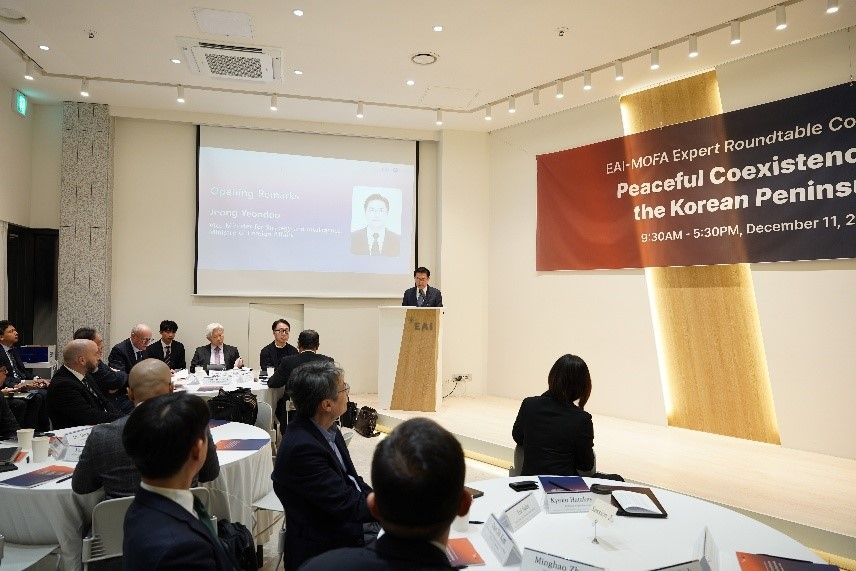 2025年12月10日至12日,复旦大学美国研究中心副主任赵明昊教授赴韩国参加东亚研究院(EAI)举办的国际会议。韩国外交部副部长郑然斗(Yeondoo Jeong)发表开幕演讲。东亚研究院院长、韩国国际政治学会前会长全在晟(Chaesung Chun)教授主持。赵明昊与加拿大麦吉尔大学教授保罗(T.V.Paul)、美国波士顿大学教授陆伯彬(Robert Ross)、日本新潟大学教授畠山京子 (Kyoko Hatakeyama)、卡内基国际和平研究所高级研究员潘达(Ankit Panda)、德国国际安全研究所高级研究员鲍巴赫(Eric Ballbach)分别发表演讲。来自韩国首尔大学、延世大学、梨花女子大学、世宗研究所、国防分析研究所等机构的专家学者进行评论。